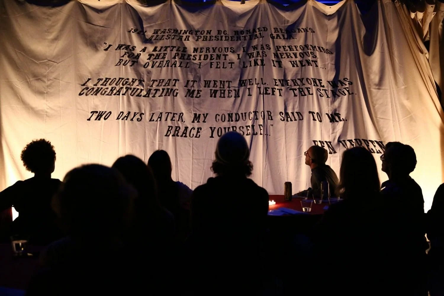 Arceneaux’s commission, a mise-en-scène of the inaugural party, foregrounds the past, illuminating the enduring presence and impact of history in the present. The piece questions the truth of past narratives, and creates an opportunity to reconsider our collective understanding of historic events. The performance immerses the audience in the scenery of the presidential celebration, where the relationships between past and present, experience and memory, and fantasy and reality are blurred as they are filtered through time and the television screen. Commissioned by Performa New York.